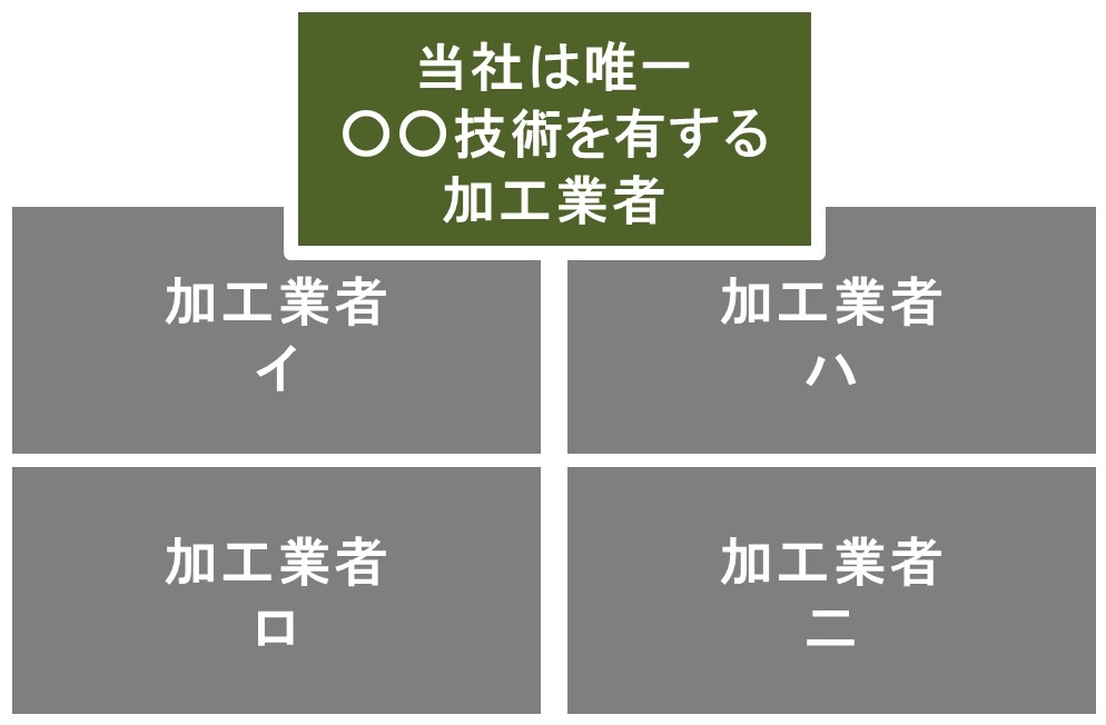 他社が真似できない独自技術又は製品を有していれば、オンリーワン型業者といえます。